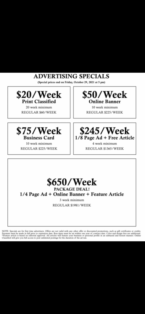 Advertising rates until December 31, 2022